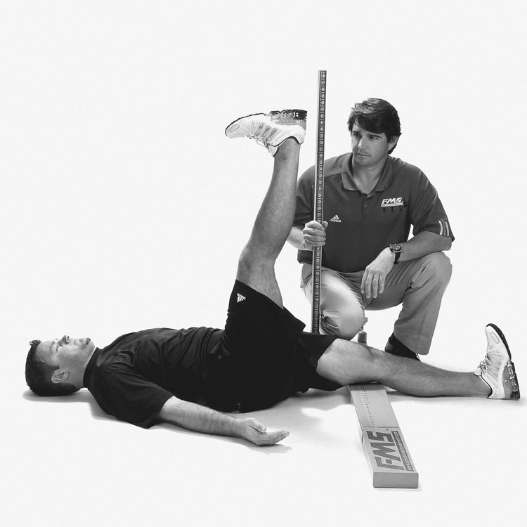 Pomanjkanje mobilnosti v kolčnem sklepu lahko opazimo pri FMS testu globoki počep prav tako pa tudi pri nekaterih drugih testih predvsem pa pri testu dvig ravne noge. V kolikor lahko brez problema dvignemo nogo v pozicijo skrajno levo (Slika 3) problemov z mobilnostjo v kolčnem sklepu nimamo. V kolikor pa noge v to pozicijo ne morete dvigniti pa v sklop ogrevanja vključite vajo spodaj (Slika 4).
